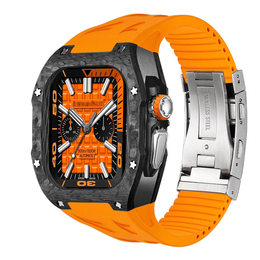 We have designed a case for the most rugged and durable Apple Watch ever created. The carbon composite case offers detailing in titanium and new specializes strap made of fluoroelastomer. It is a case made for athletes and adventurers.